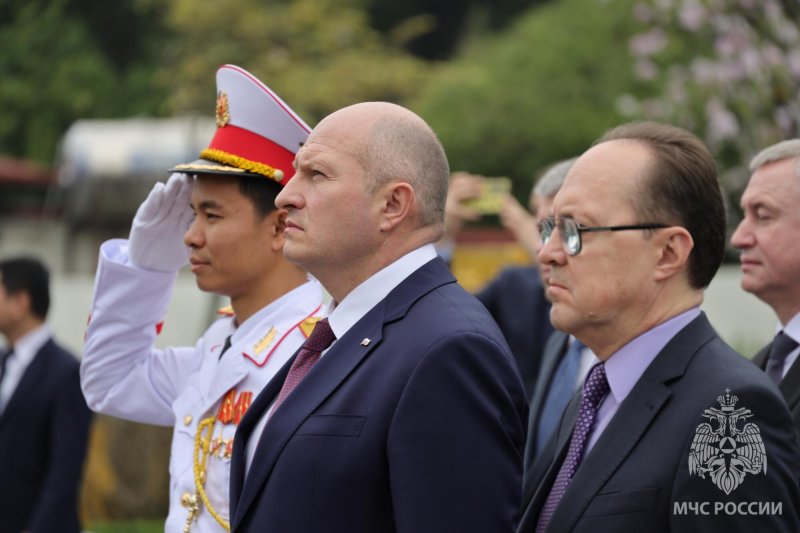 Глава МЧС России возложил цветы к Мемориалу павшим героям и Мавзолею основателя Компартии республики Хо Ши Мина в Ханое.