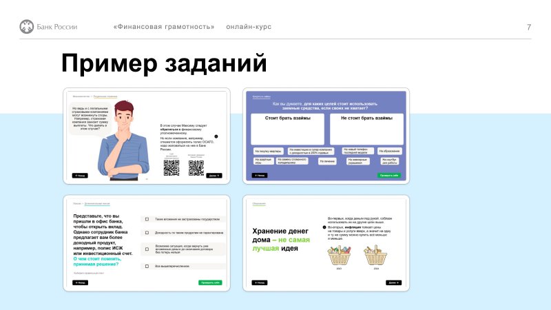 Бесплатное обучение доступно в разделе курса на сайте Университета Банка России: finclass.info/_wt/fingram_start.