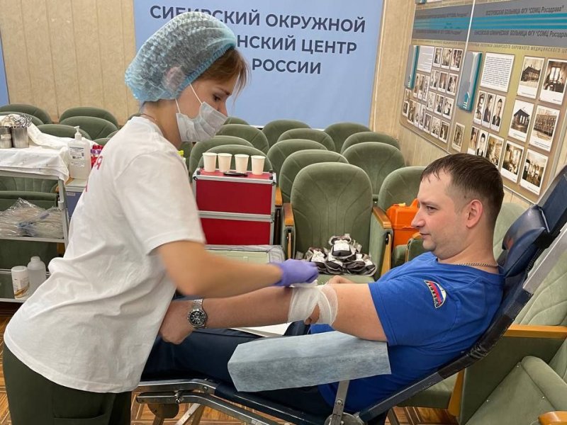 В межведомственной донорской акции приняли участие 60 представителей региональных главков МЧС и МВД России, Следственного комитета, Роскадастра и других ведомств.Пункт приема Новосибирского клинического центра крови развернули в поликлинике Сибирского окружного медицинского центра Федерального медико-биологического агентства.Сотрудники чрезвычайного ведомства не понаслышке знают, что донорская кровь – это, прежде всего, помощь нуждающимся больным людям, а также пострадавшим при различных чрезвычайных ситуациях. Сейчас переливание крови порой необходимо и военнослужащим, выполняющим свой долг во время военной специальной операции.Специальные емкости, рассчитанные на забор 450 миллилитров крови, стремительно наполнялись. В итоге за 4 часа работы пункта собрано 27 литров донорского материала.