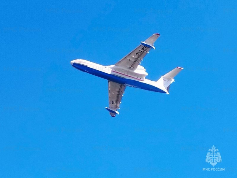 Для стабилизации лесопожарной обстановки в Забайкальский край прибыл самолет Бе-200ЧС МЧС России. Самолет-амфибия способен сбросить в очаг пожара за один вылет до 12 тонн огнетушащей жидкости. Заправка водой осуществляется в аэропорту Кадала с помощью пожарных автоцистерн.