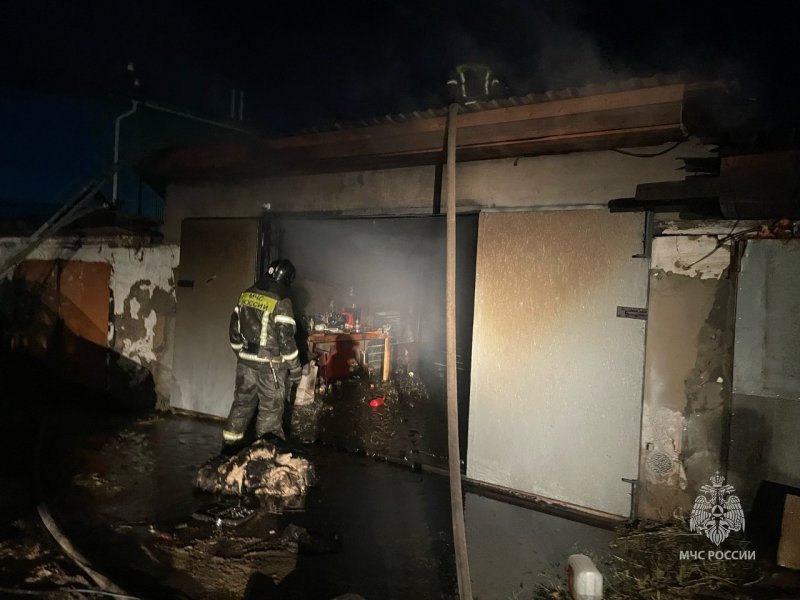 В 22:40 на пульт пожарной охраны поступило сообщение о том, что горит гараж по улице Спортивная. На место немедленно были направлены расчеты пожарно-спасательной части №31 в составе шести человек на двух единицах техники.