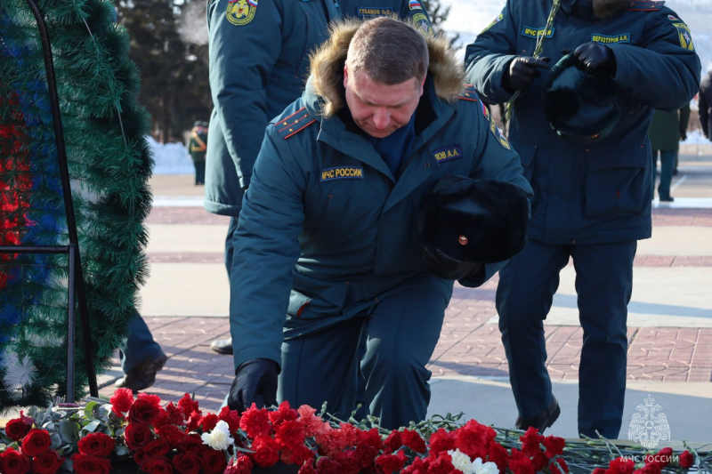 Представители ГУ МЧС России по Забайкальскому краю возложили цветы к Вечному огню в Чите
